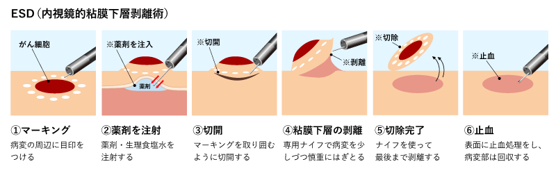 さらに、内視鏡によるがんの治療も広く行われています。早期胃がんや早期大腸がんに対しては、内視鏡的粘膜切除術(EMR)や内視鏡的粘膜下層剥離術(ESD) など、外科的手術に比べて体の負担が少ない治療で完治させることが可能です。