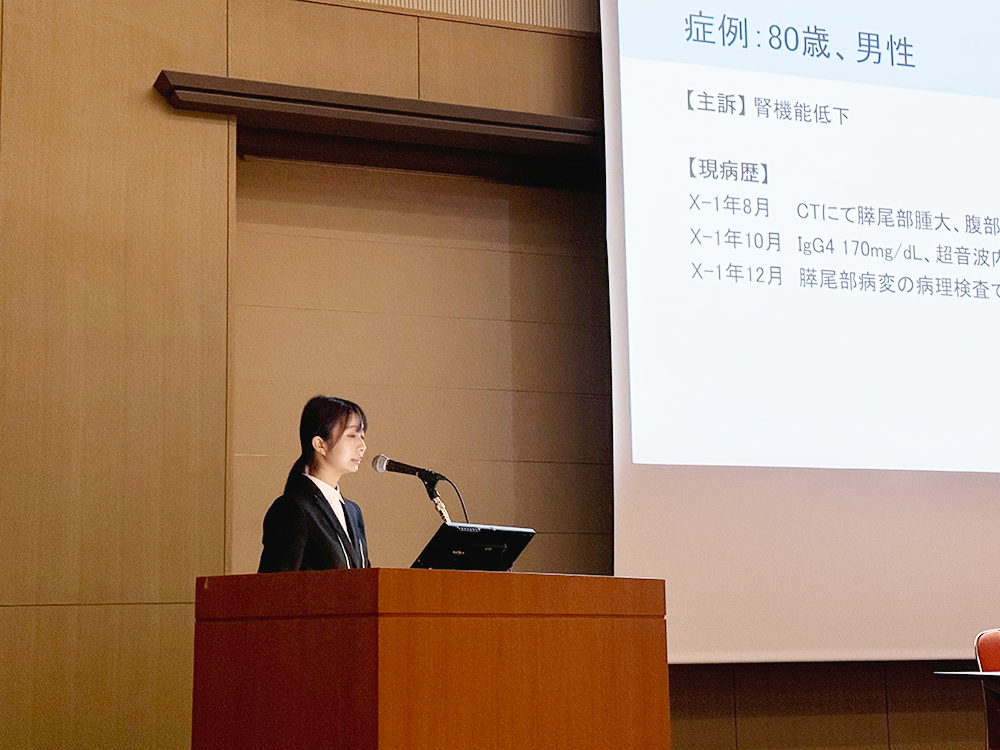 IgG4関連疾患による新しい腎障害の機序を示した症例でしたが、従来の腎障害機序とあわせ十分に説明していただき、発表・質疑応答ともに落ち着いて行っていた点をご評価いただきました。